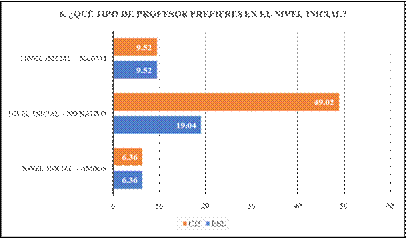 4) ¿Qué tipo de profesor prefieres en el nivel inicial de español? ¿Nativo o no nativo? ¿Por qué?