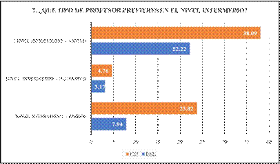 A partir de la experiencia de los aprendices, ¿qué es mejor y por qué? Para los estudiantes no existe una supremacía de un tipo de profesor frente a otro, ya que ambos son percibidos como modelos complementarios en distintos momentos del aprendizaje; por ejemplo, con el profesor no nativo en niveles iniciales para explicar la gramática y con el profesor nativo en niveles intermedios y superiores para practicar la conversación, descubrir aspectos de la vida social y cultural de los españoles o para conocer mejor el registro coloquial.
