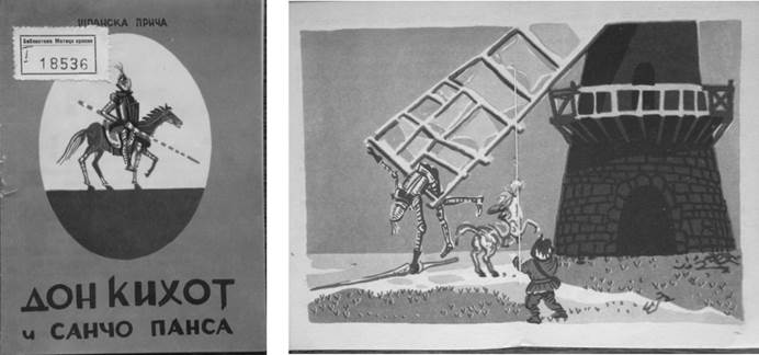 Con el Quijote juvenil siguiente, en 1922, ocurre lo mismo: se parte de una versión alemana y se aprovechan sus ilustraciones. Para no alargar la lista, diremos que de todos los Quijotes juveniles/infantiles serbios publicados desde 1882 hasta 2008, un 60% se vale del material gráfico procedente de ediciones extranjeras. Así, adornan nuestros Quijotitos dibujos de los franceses Bertall y Forest (1882), Johannot (1895/6, 193?) y Doré (1997), del alemán Adolf Wald (1922 o 1932), del italiano Libico Maraja (1968) y del croata Vladimir Kirin (1960). Sin embargo, la ediciones restantes (seis) traen dibujos creados por autores pertenecientes al ámbito de la cultura serbia, sea por nacimiento (Djuka Janković, Branko Miljuš, Saša Mišić, Rade Marković), sea por elección (Vladimir Žedrinski). A continuación haremos un repaso por estas ediciones, hasta ahora muy poco estudiadas, centrando nuestra atención en la parte ilustrativa de las mismas.